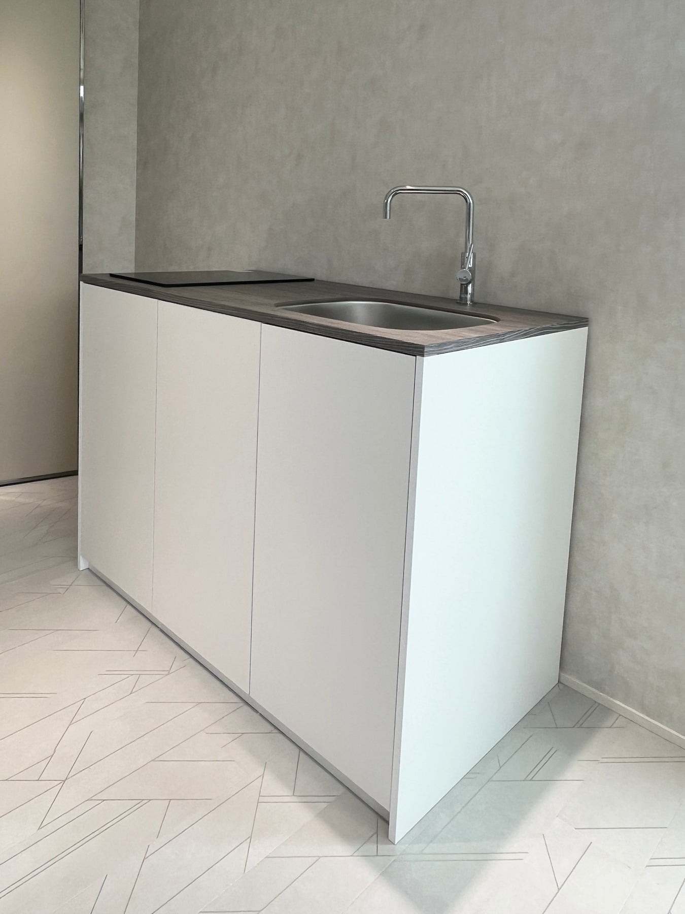 水垢やカビの原因になりやすいシンクと天板の継ぎ目もありません。使い勝手のいいミニキッチンです。