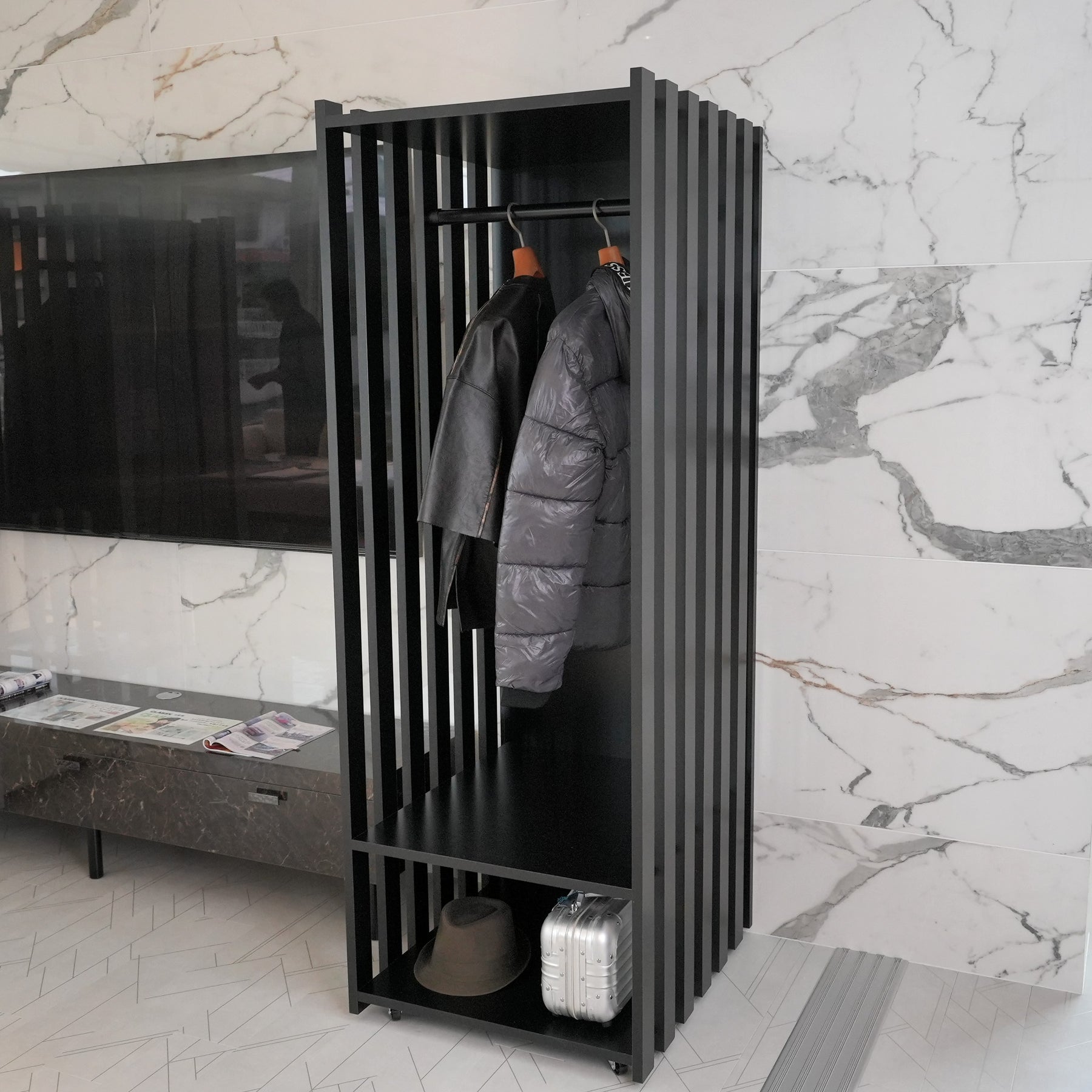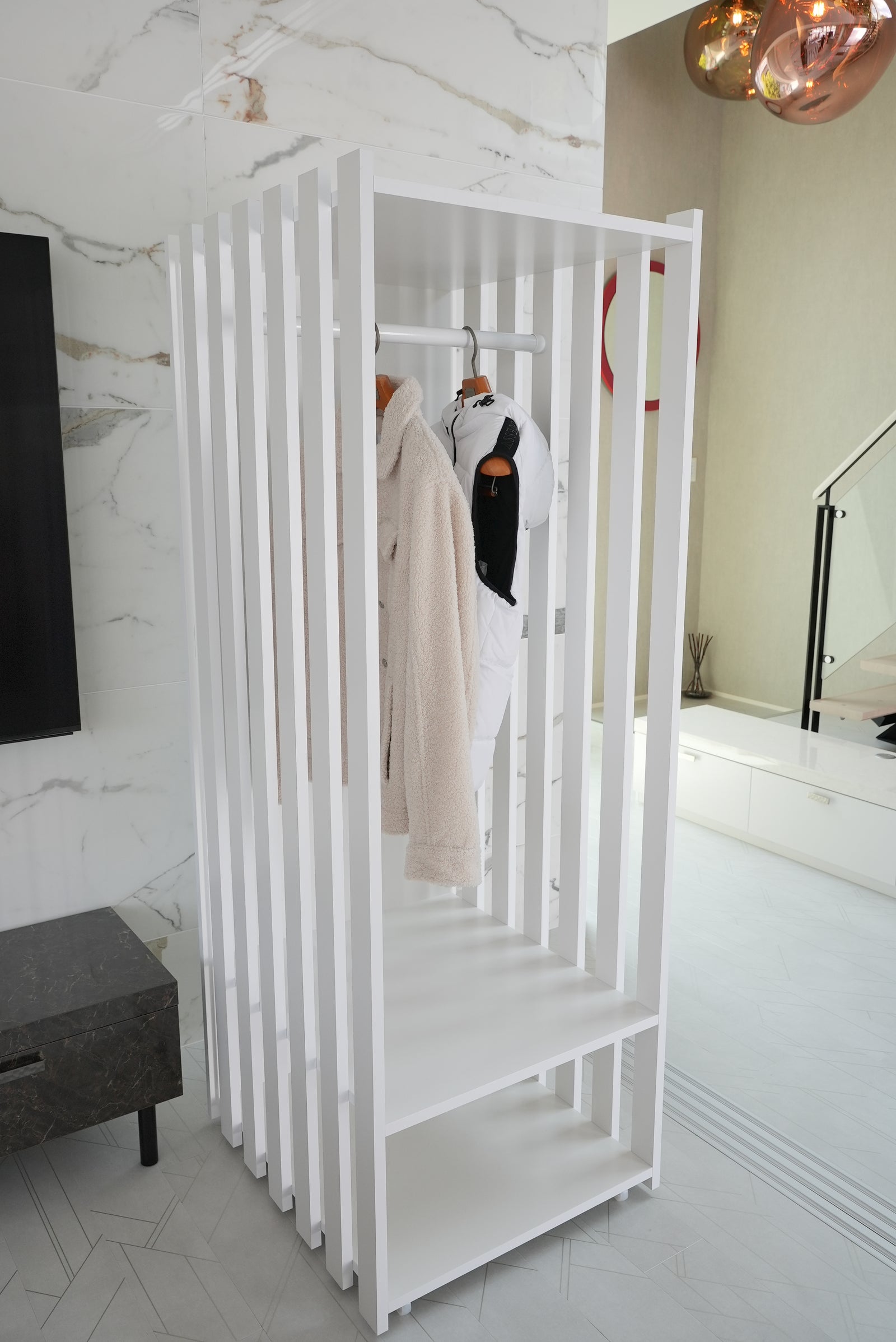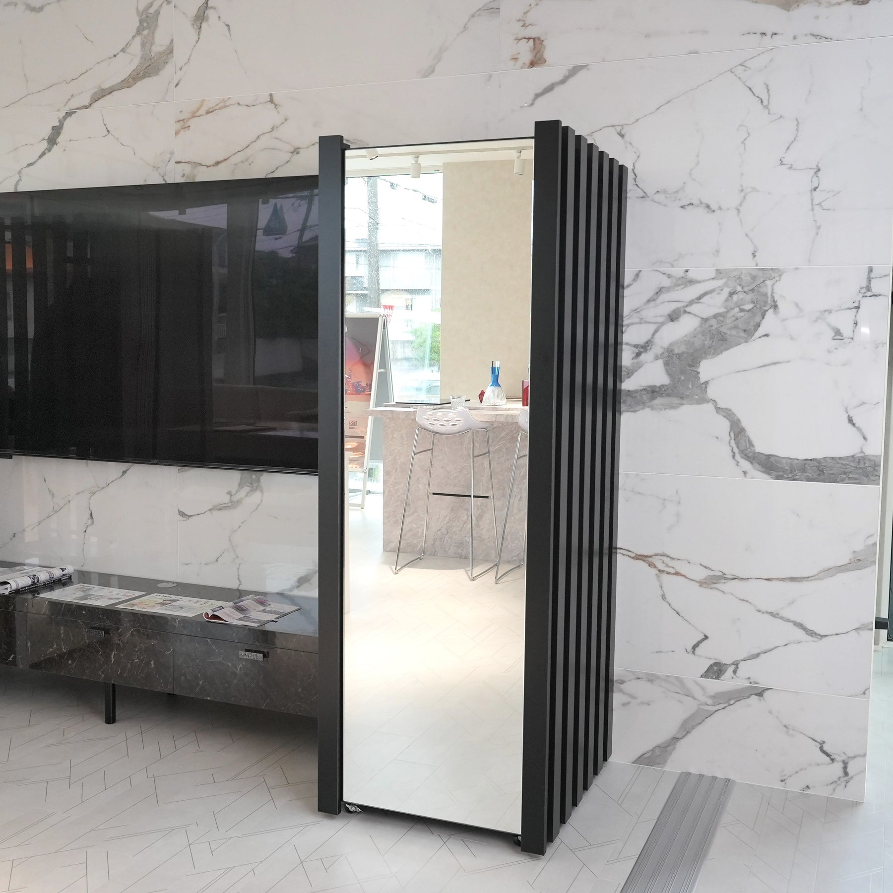 大きなミラーで使い勝手の良い姿見。内部はハンガーパイプが設置されており、上着などを収納できるクローゼットとしての機能を有しています。