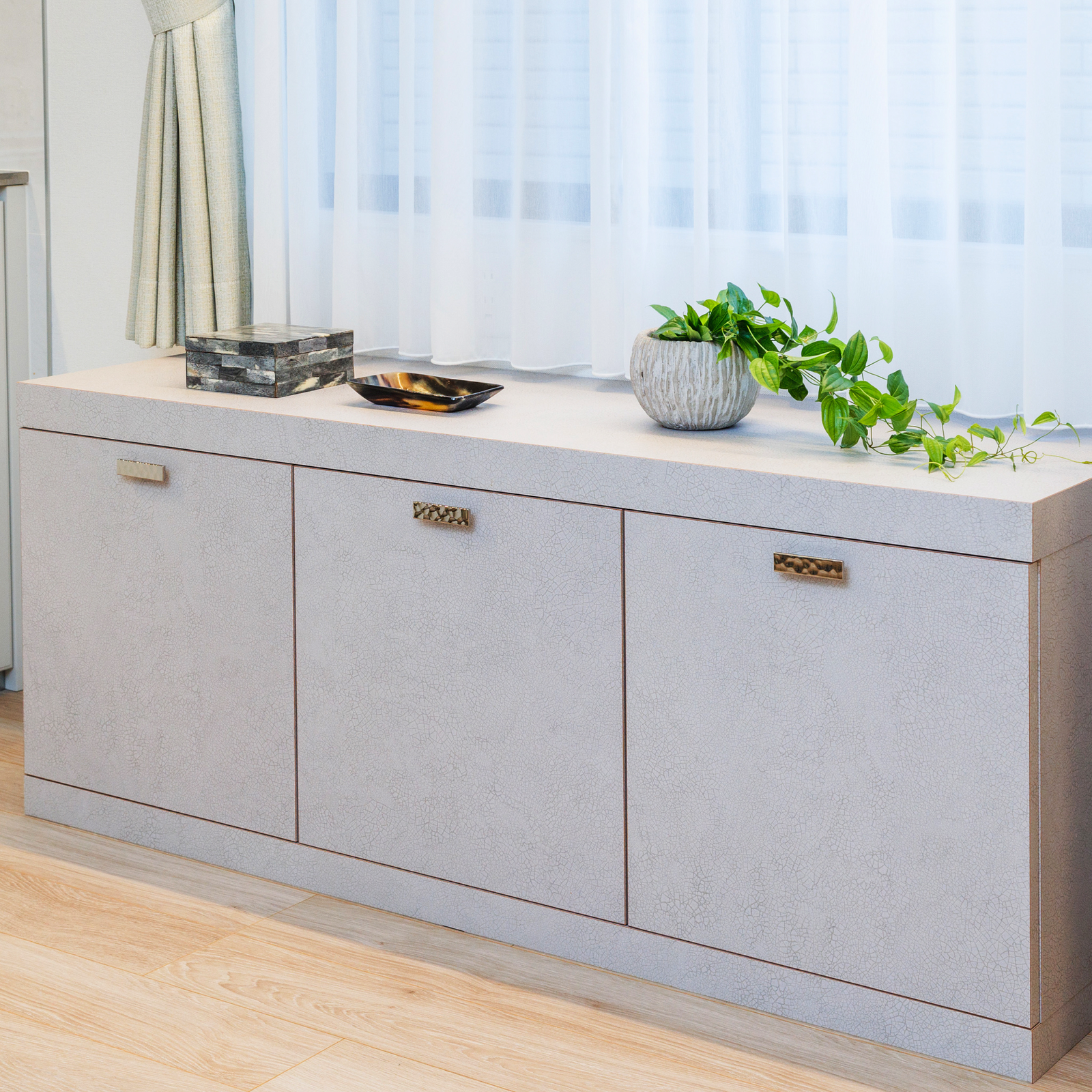 傷に強くお手入れがしやすい、耐久性に優れた化粧板です。 化粧板の表面にミクロの特殊加工を施すことで立体感やカラフルなデザインの化粧板で光の効果で見る角度により表情が変化します。