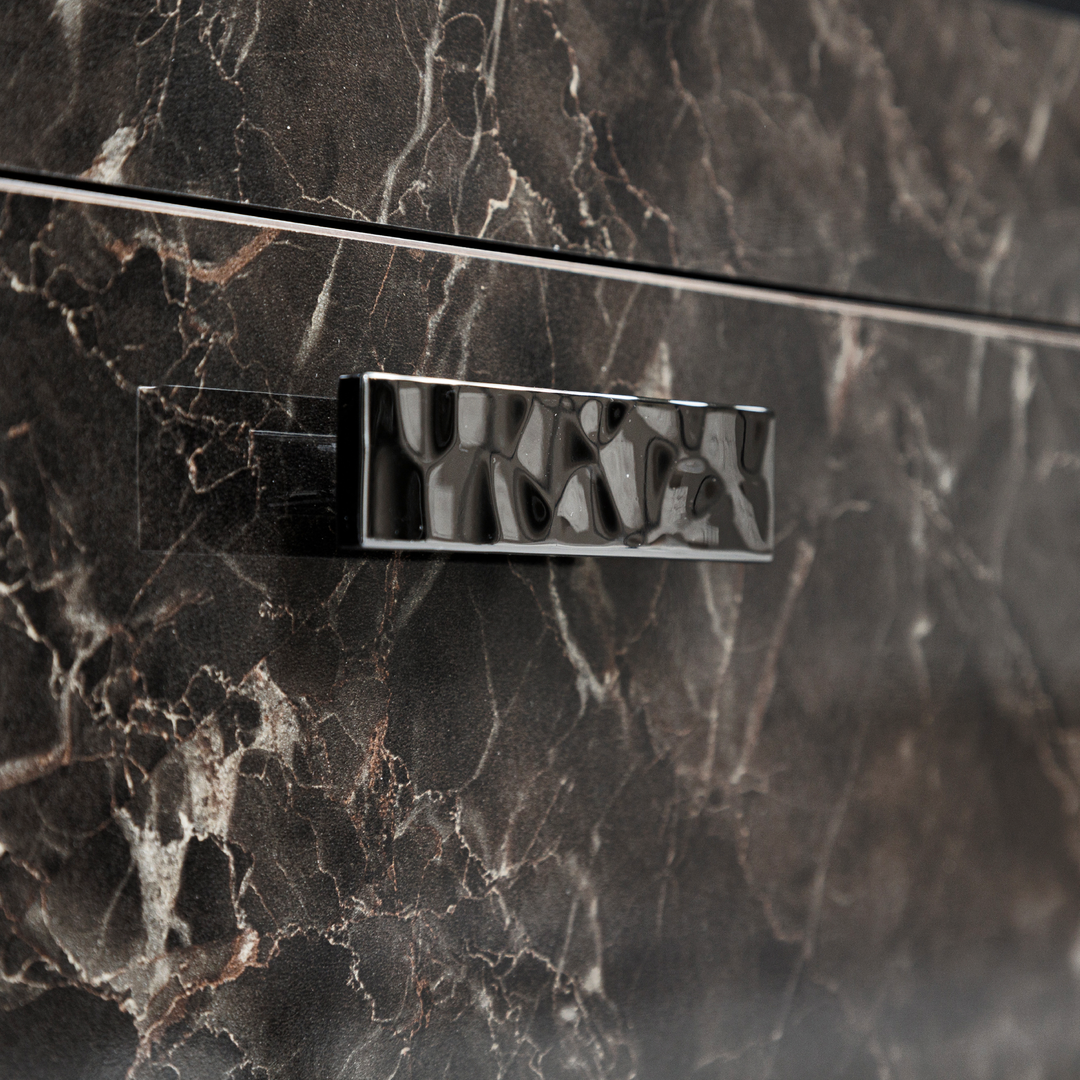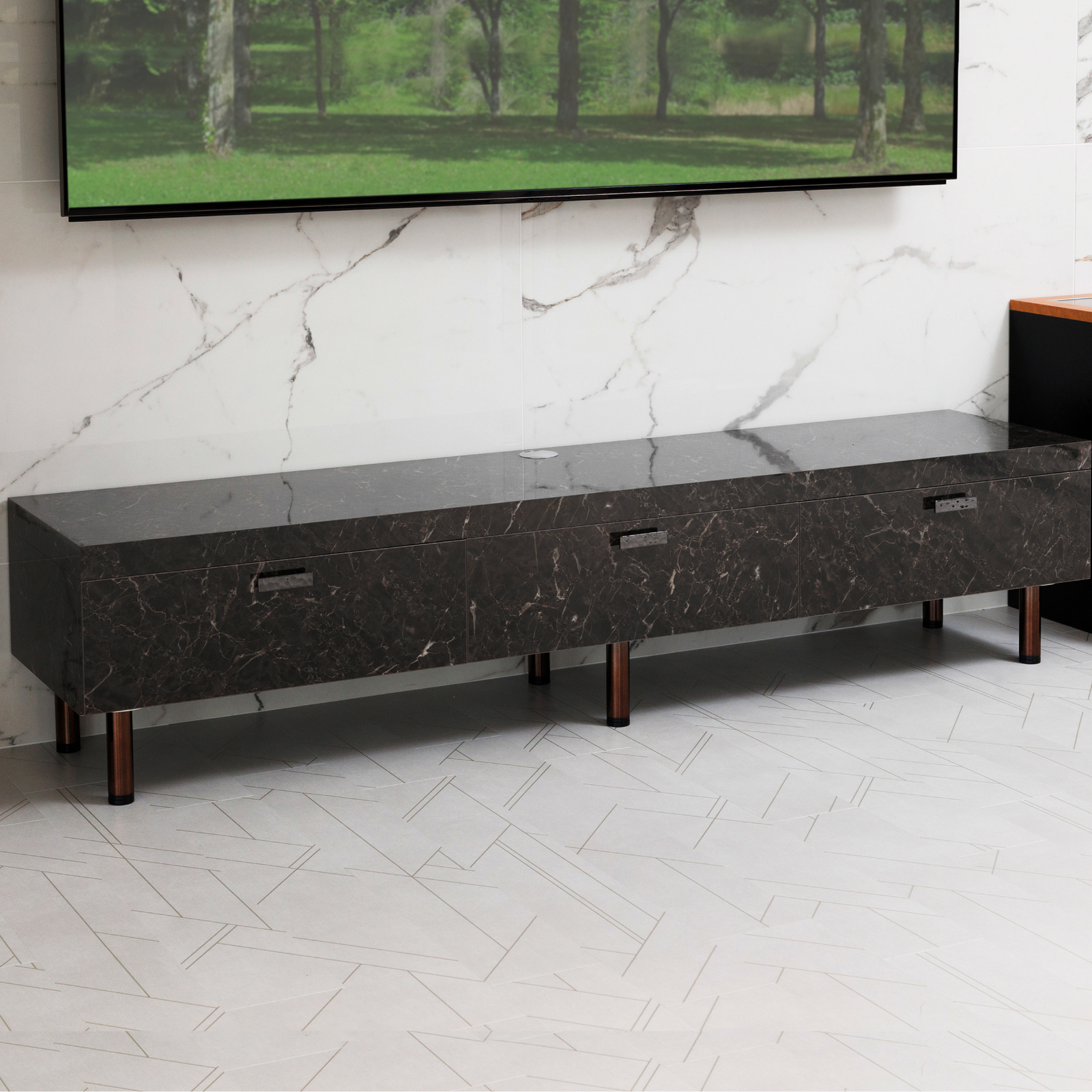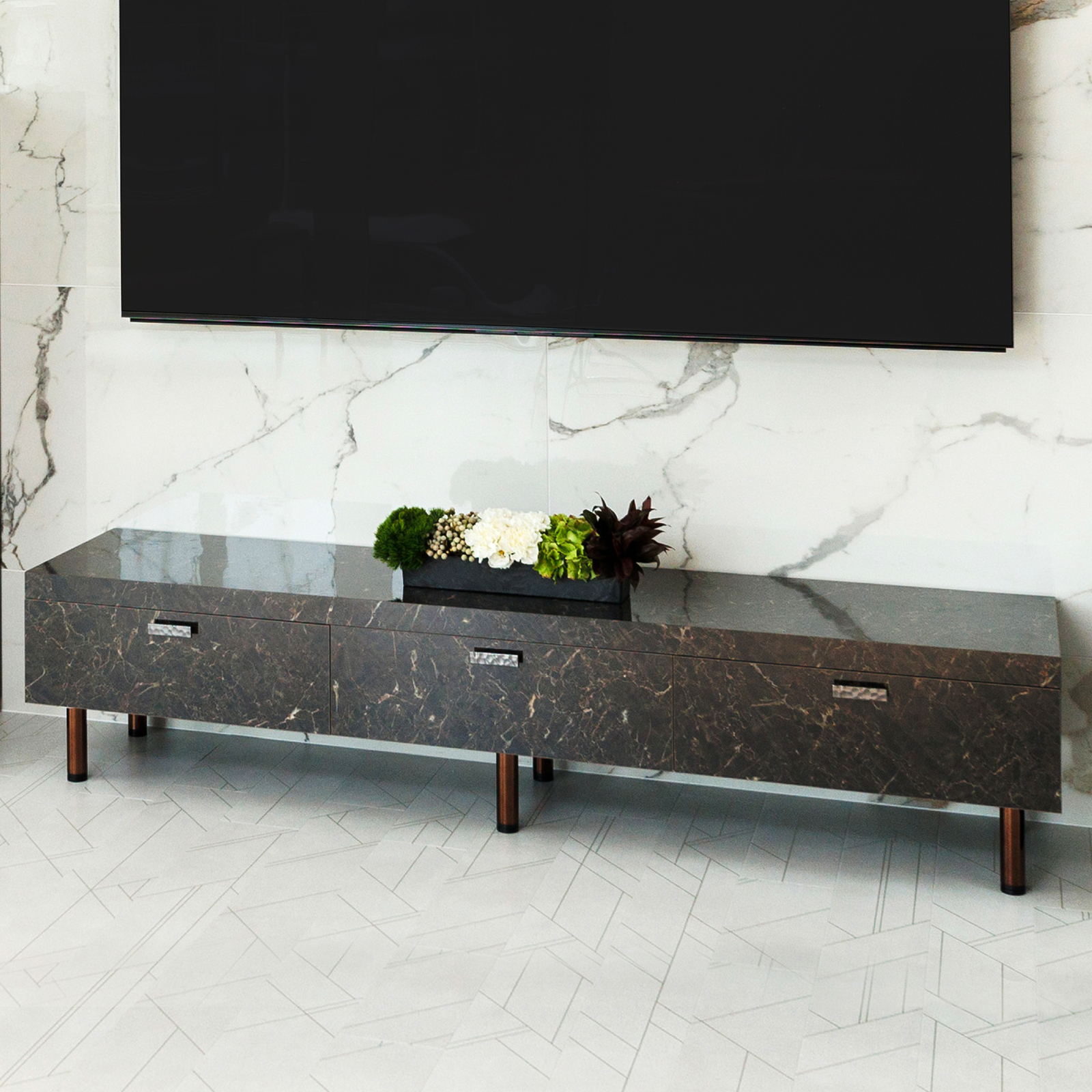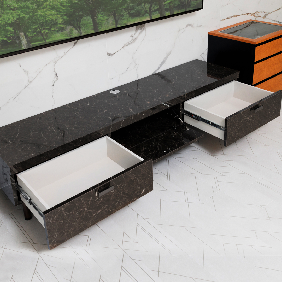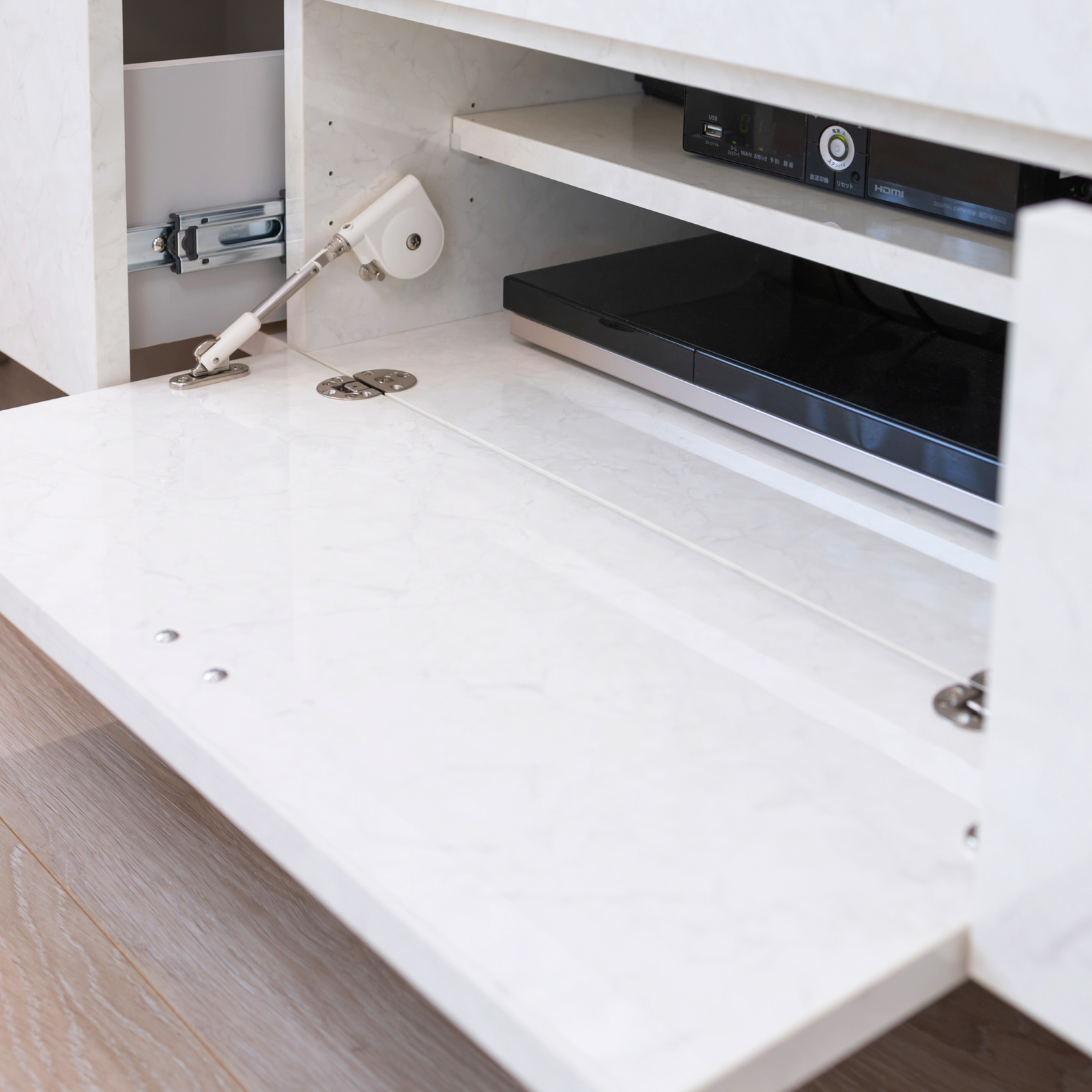 壁付けテレビと組み合わせてサウンドバーを置いたり、インテリアに馴染む高級感のある収納家具としてもお使いいただけます。
